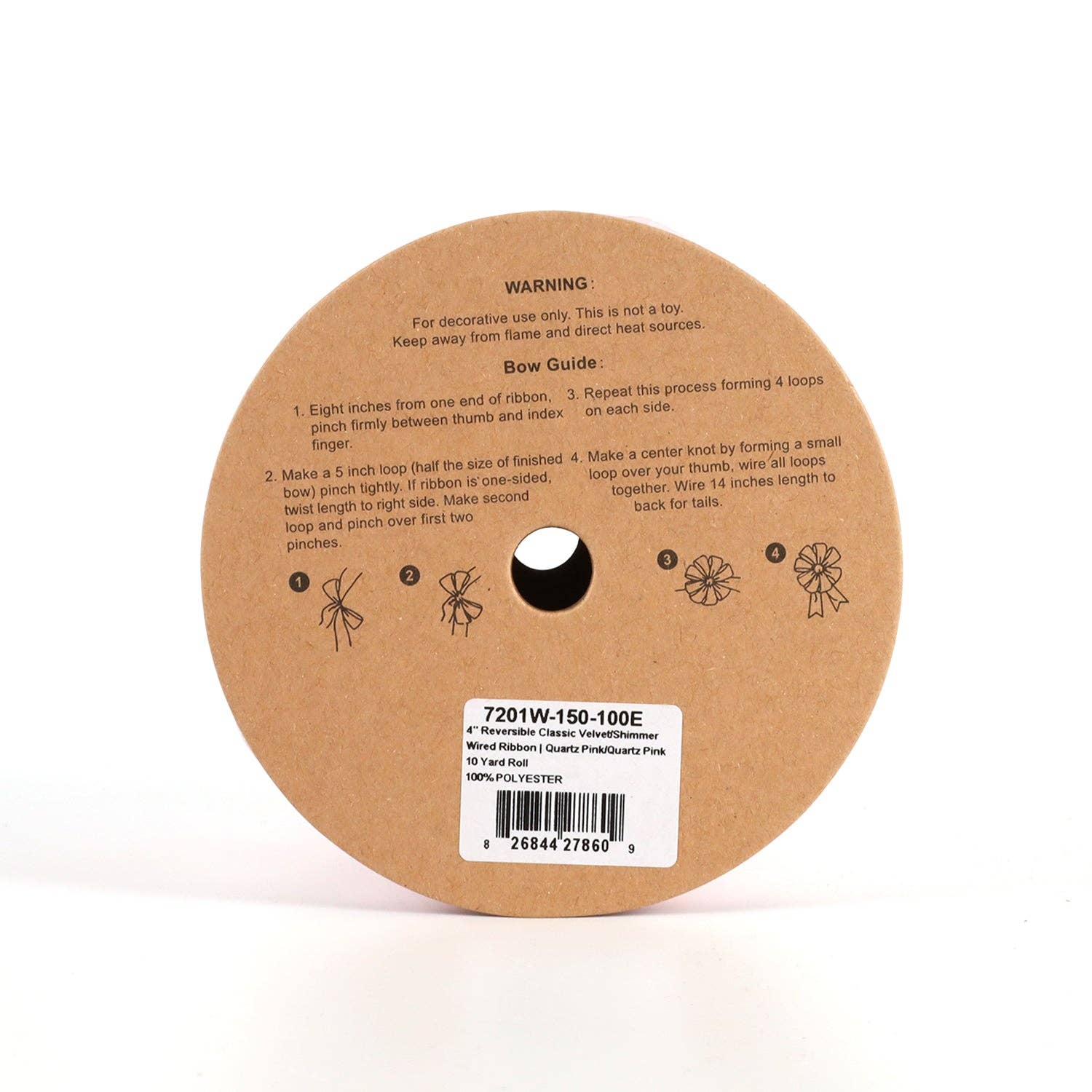 * Elegant Reversible Design: Elevate your projects with our 4" Reversible Classic Velvet/Shimmer Wired Ribbon in Quartz Pink. This ribbon features a reversible design with classic velvet on one side and shimmering texture on the other, offering versatility in your creative endeavors.