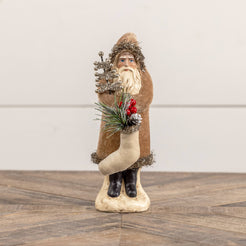 Enjoy the holiday spirit with Ragon House's 8" Fawn Velvet Belsnickle. This delightful figurine is a great addition to your winter or Christmas decorations. Draped in soft velvet, our Belsnickle brings a sense of vintage elegance and warmth. It's perfect for any space in your home and complements various decor styles. As part of our carefully crafted home accents, it embodies our commitment to quality and unique design. Let this piece bring joy and comfort to your holiday season.