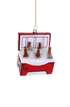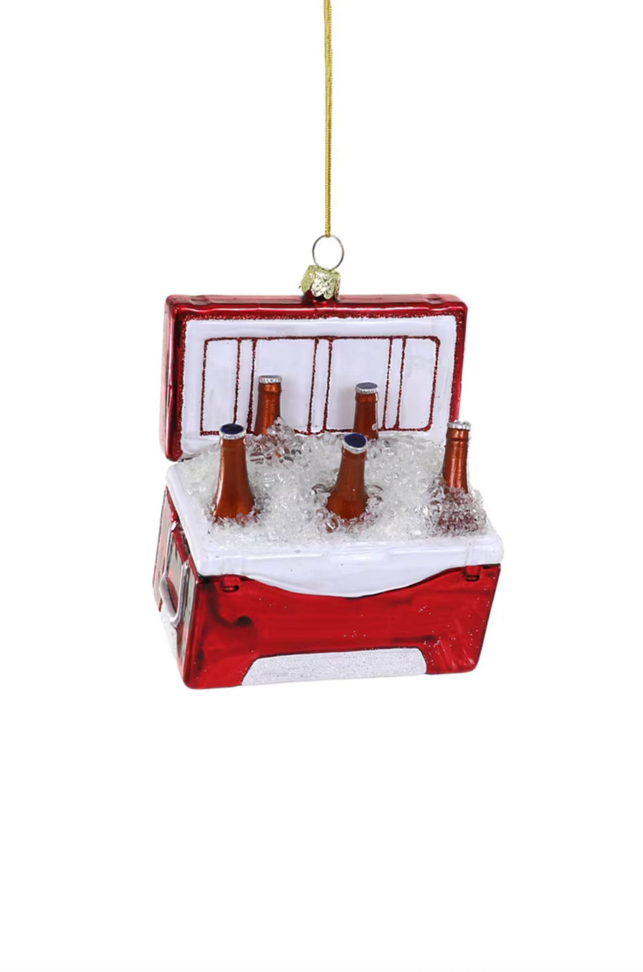 Bring a fun, laid-back touch to your holiday décor with this playful Cooler of Beer Ornament. Designed to resemble a classic ice-filled cooler packed with frosty bottles, this ornament captures the carefree spirit of tailgates, picnics, and summer days—wrapped in festive holiday charm. Its glossy finish, detailed labels, and sparkling ice accents make it a standout conversation piece on any tree.