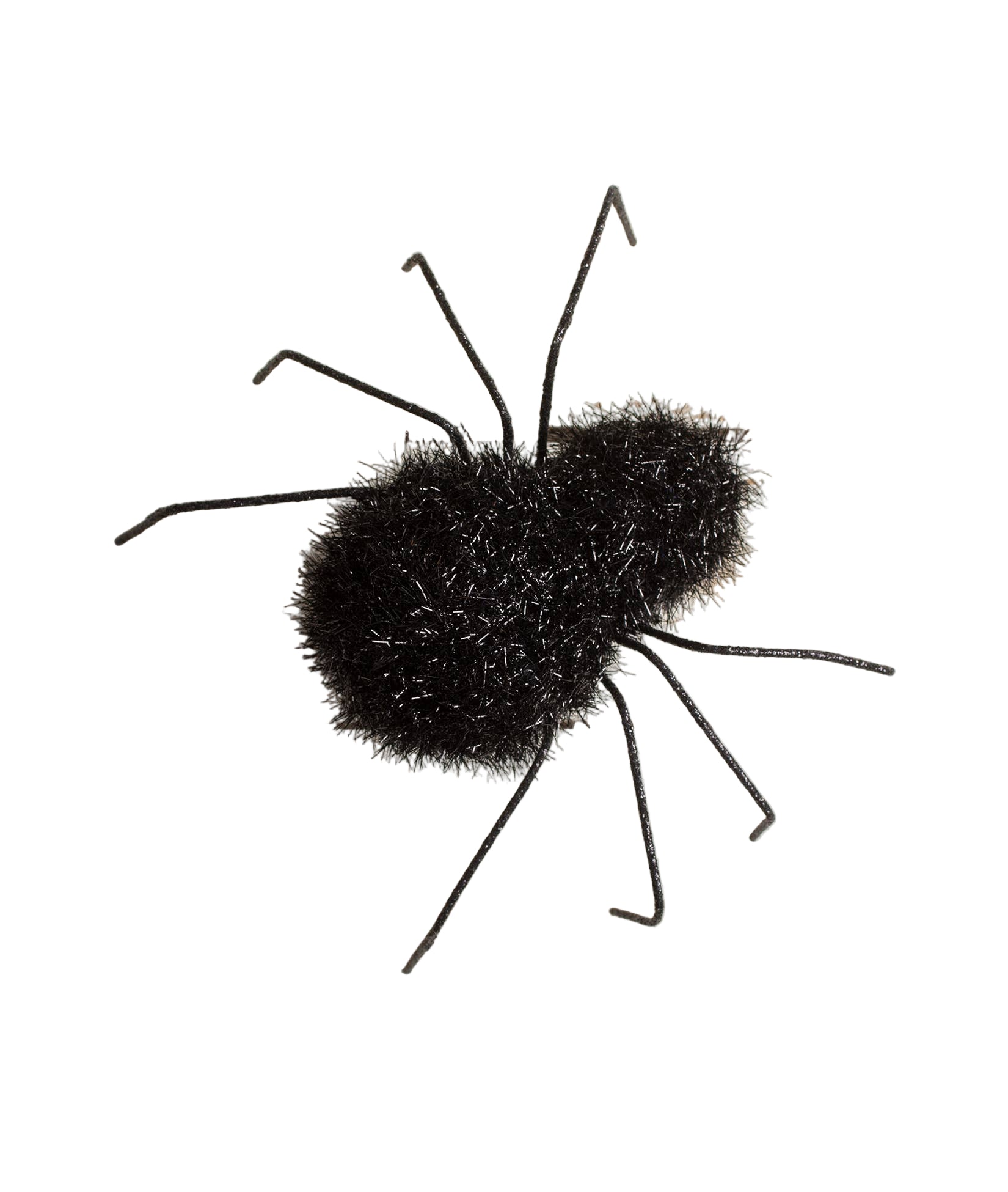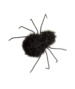 Give your guest the creeps in the most spooktacular way! What is spookier than a large hairy spider? This spider is black with black tinsel covering his body. Set this spider anywhere and everywhere for a great addition to any of your halloween décor. Hand-painted resin, tinsel, and wire.
