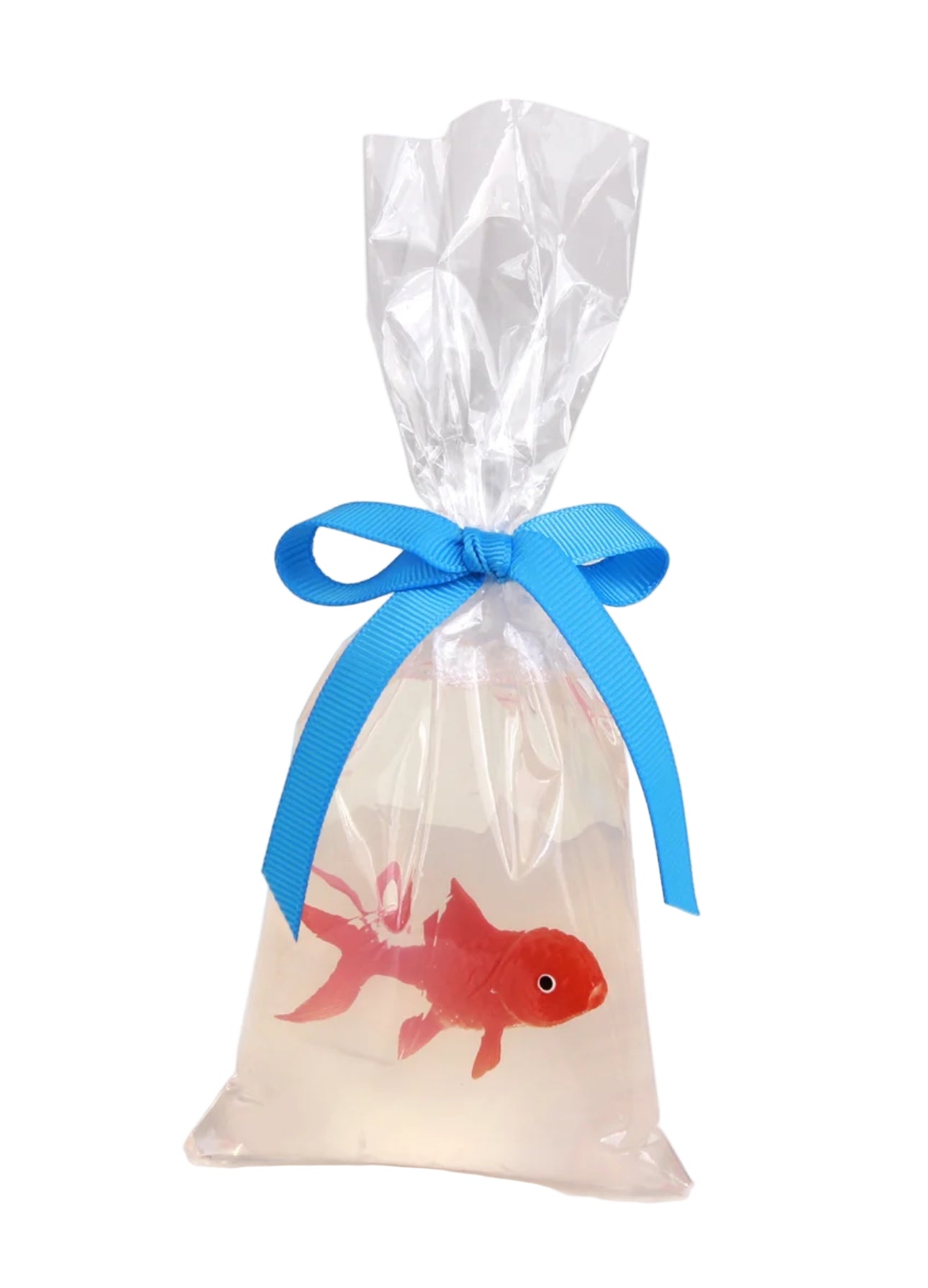Bring a little childhood magic to your sink-side moment. Our Goldfish-in-a-Bag Soap looks like the classic carnival prize - but don’t worry, this little swimmer is here strictly for decorative delight. Each bar is hand-poured, crystal clear, and tied with a cheerful ribbon for that playful-but-polished Atelier touch.