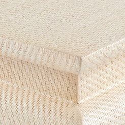 Hand-wrapped lacquered grasscloth brings a modern, luxurious feel to the Elina Console. This versatile piece is well-placed below a mirror, behind a sofa or in an entryway. The curved chow feet, our modern take on classical Chinoiserie, brings a whimsical and exotic feel to this piece.