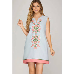 This light blue embroidered dress is the perfect spring piece. Dress her up with heels and a fun bag, or make her more casual with sandals.
