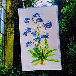 In the French tradition of Decoupage, this bent-glass tray was handcrafted in our New York Studio. This illustration reflects Ben's unique aesthetic for the charming and unusual. Each is individually signed by Ben. Both practical and charming, Ben's signature glass decoupage is food safe, wipe clean and the back side is felted. Also suitable for hanging with a plate hanger and attractive standing on a gallery easel. A folded card explaining the time honored decoupage process accompanies each piece.