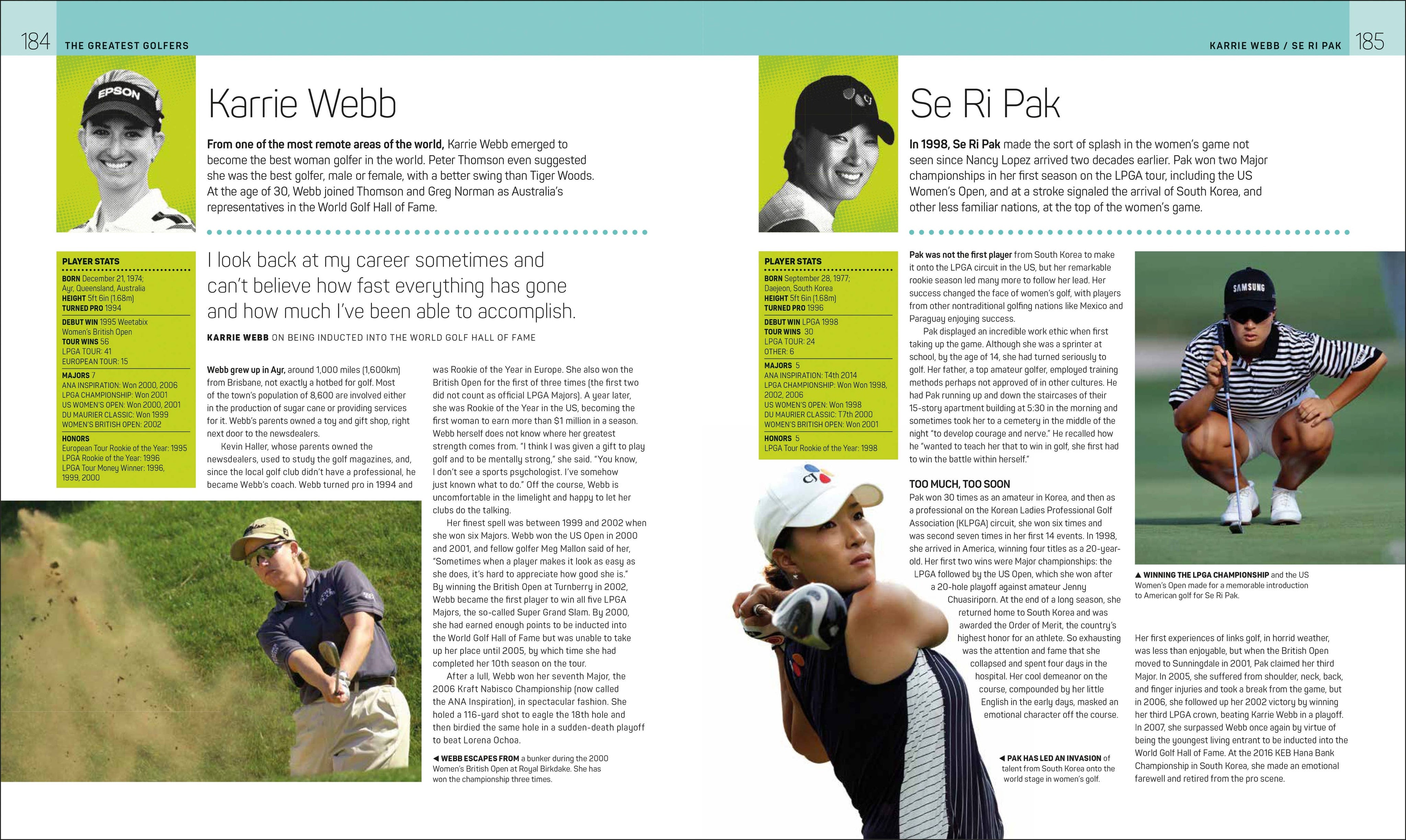 Find all there is to know about golf: from its ancient origins to the global competitions today. Learn about the strokes and analyze the talents of the world's best. Check out the gear and try out the equipment, from drivers and irons to carts and clothing. Meet the players from the Golden Bear to the White Shark, and come face-to-face with the stars as you read about their finest performances. And take a close-up look at the great competitions from the Open to the Curtis Cup and walk the fairways of the preeminent courses.