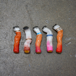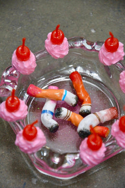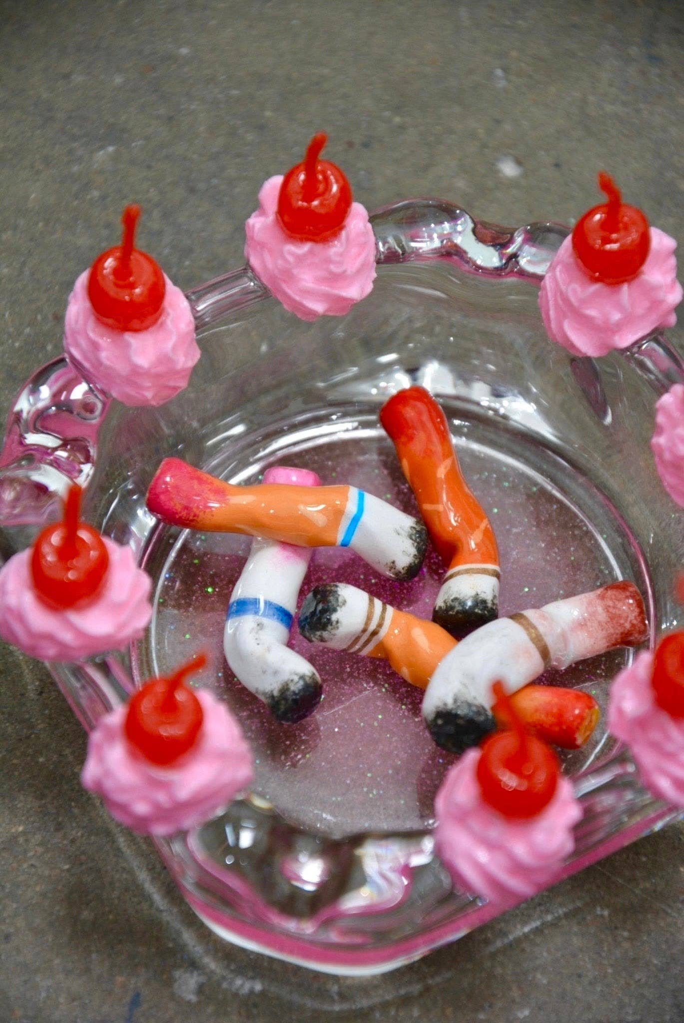 We imagine icon Carrie Bradshaw puffing on these sculptural cigarettes. An artistic commentary on the intersection between the feminine and the Savage, these crinkled smokes are handcrafted from clay, complete with lipstick stains and that "just extinguished" look after a night of indulgence.