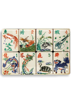 Handcrafted in New York. Made to spark conversation. A single sparrow in flight: a whisper of springtime in Shanghai, inked in jewel tones and layered with memory. Inspired by the lyrical artistry of vintage mahjong tiles, this decoupage tray transforms an ancient game piece into a poetic object of desire. Handmade in our New York Studio using the time-honored French découpage technique, each glass tray tells a story of cross-cultural elegance and quiet ritual. It is signed individually by Ben—a gesture of craftsmanship and character—and backed in lush felt for a soft, satisfying finish. Food-safe and effortlessly cleanable, it is equal parts form and function: use it to cradle a morning espresso, corral your favorite pens, or hold court as a mini art piece on your bookshelf. However you use it, it never stays in the background. Each tray arrives with a folded note detailing the old-world découpage tradition, adding a literary touch to its already storied appeal.