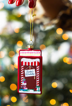 Wanderlust for your tree. Santa's Workshop is reimagined in a charming glass keepsake Christmas tree ornament!