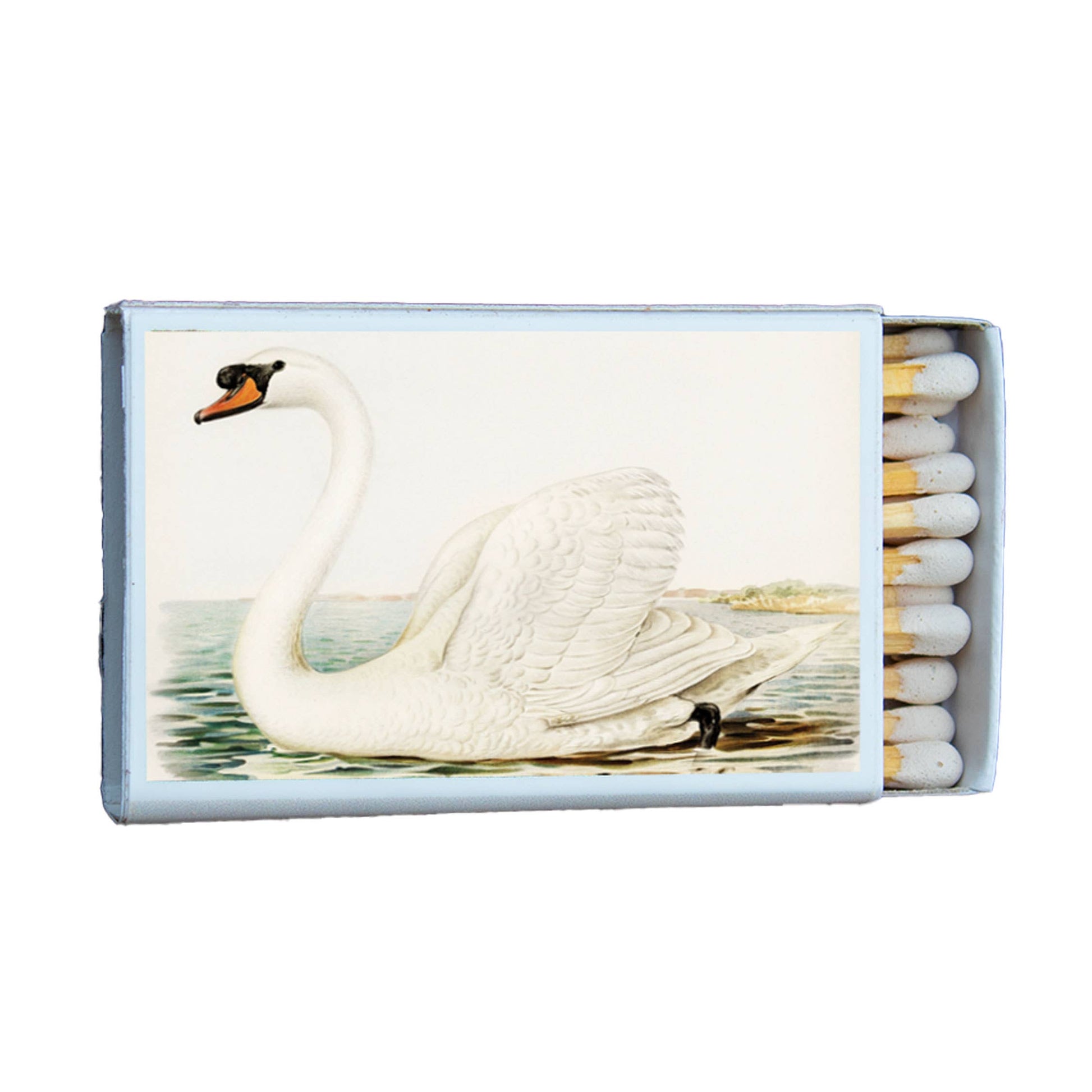 • Matches to elevate your home decor. Light your candles and incense with style. • These unique matchboxes feature an image of a Swan on both sides • Each box contains 20-23 matches and measures about 2.25”x1.5”x.5”