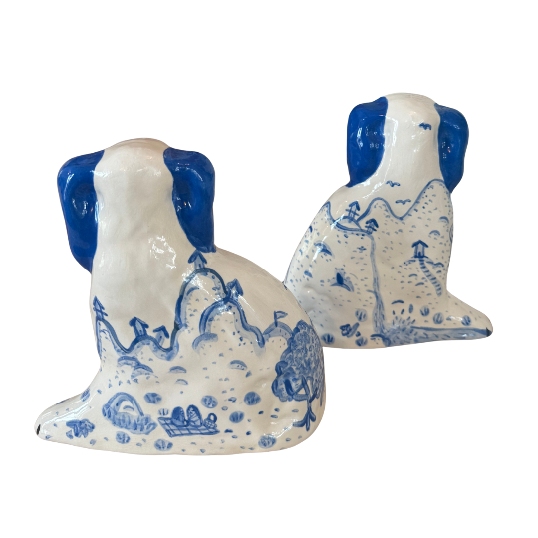 Ceramic Staffordshire dogs made by hand locally in Charleston. These reimagined antique staples bring joy to any space! Sold as a pair