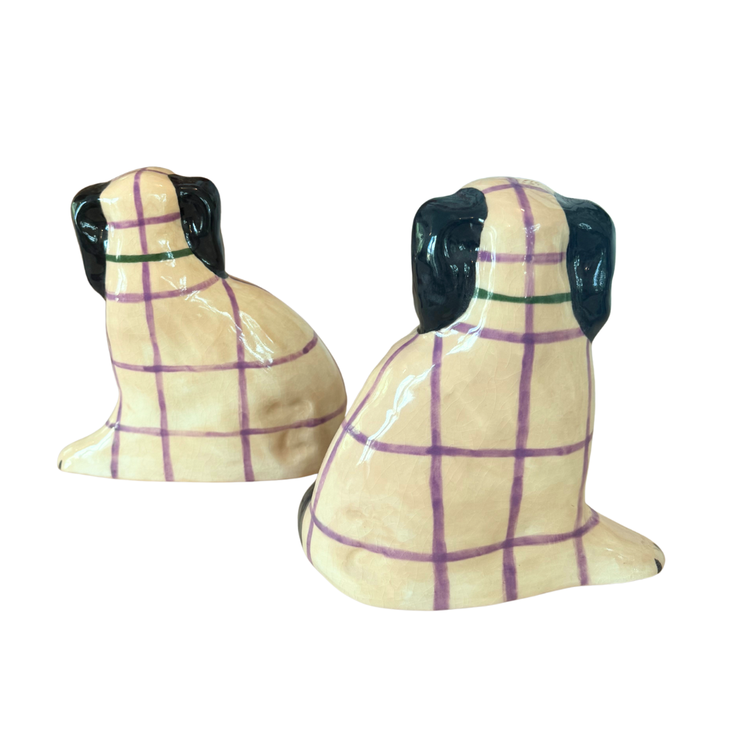 Ceramic Staffordshire dogs made by hand locally in Charleston. These reimagined antique staples bring joy to any space! Sold as a pair