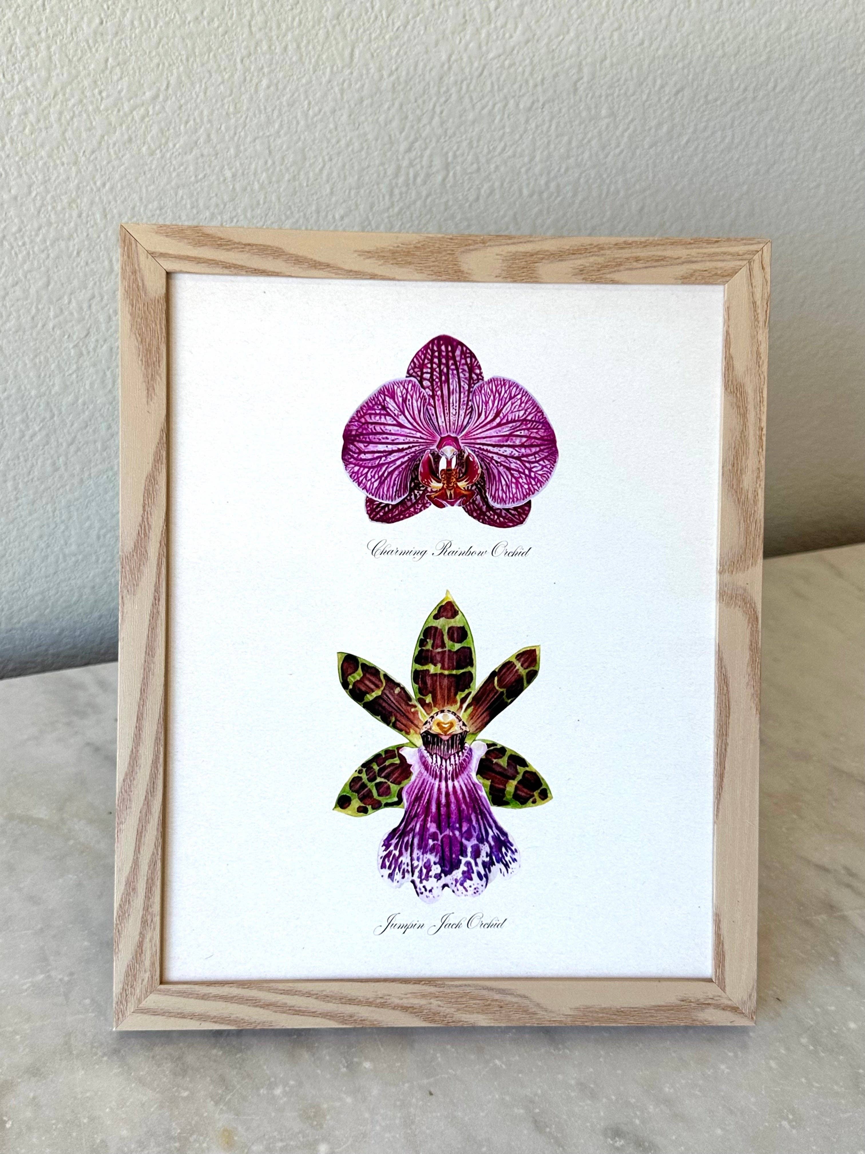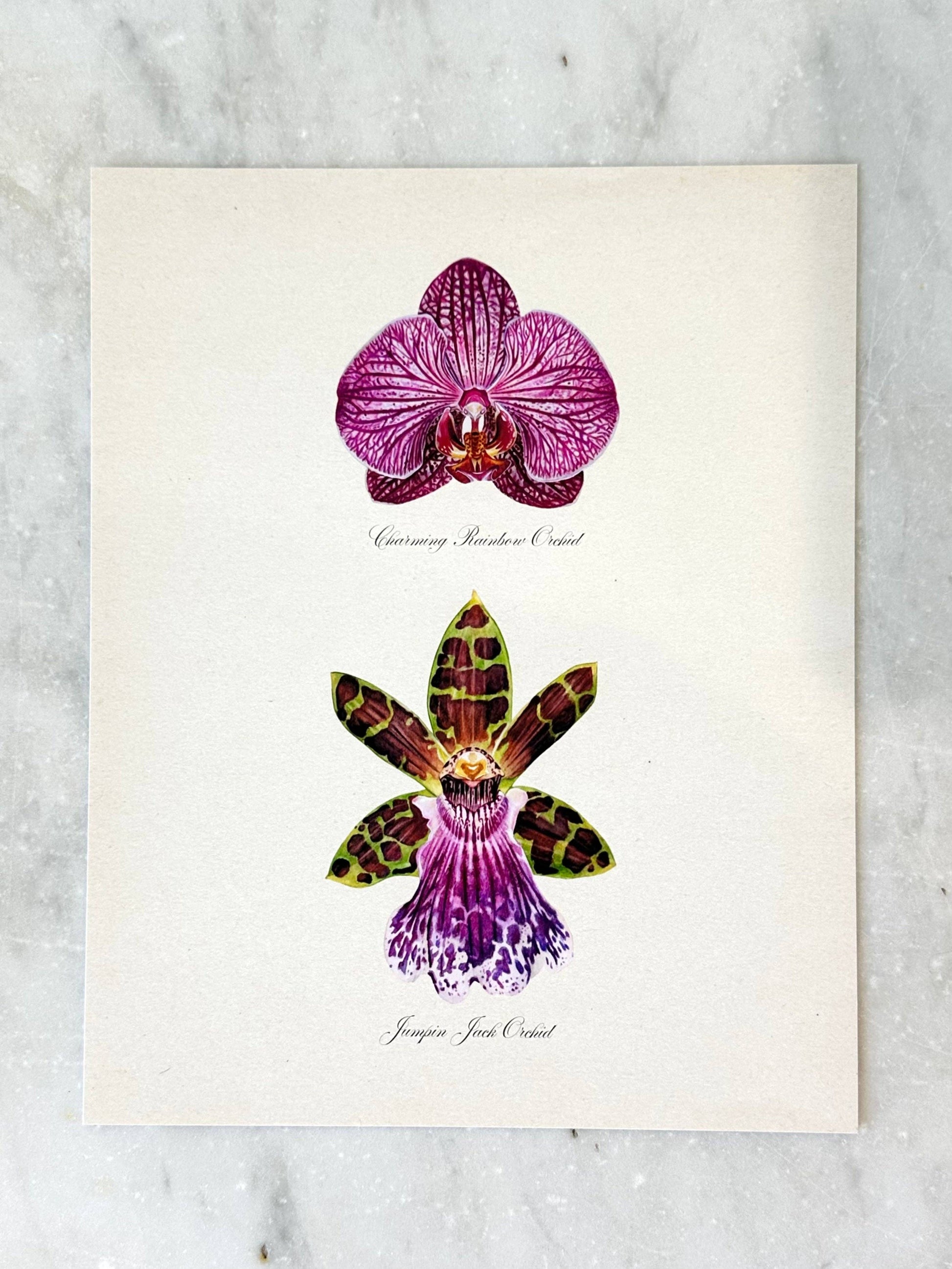Purple Pair Orchids on vintage-style background. Printed on archival paper and ink by Hadden in her studio. Artwork by Hadden Sharapov. Print comes unframed Size 8x10" Artist signed on back of print.