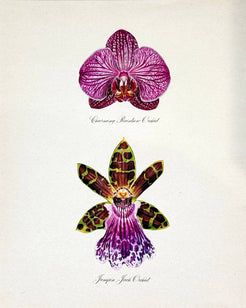 Purple Pair Orchids on vintage-style background. Printed on archival paper and ink by Hadden in her studio. Artwork b...