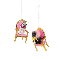 Add a touch of regal whimsy to your holiday décor with this charming Royal Pug Ornament. Each design features a crowned pug seated on an ornate gold chair with a vibrant pink cushion, bringing a playful yet elegant presence to your tree. Hand-painted details, luxe embellishments, and expressive craftsmanship make these ornaments delightful standalone pieces or a perfect pair when displayed together.