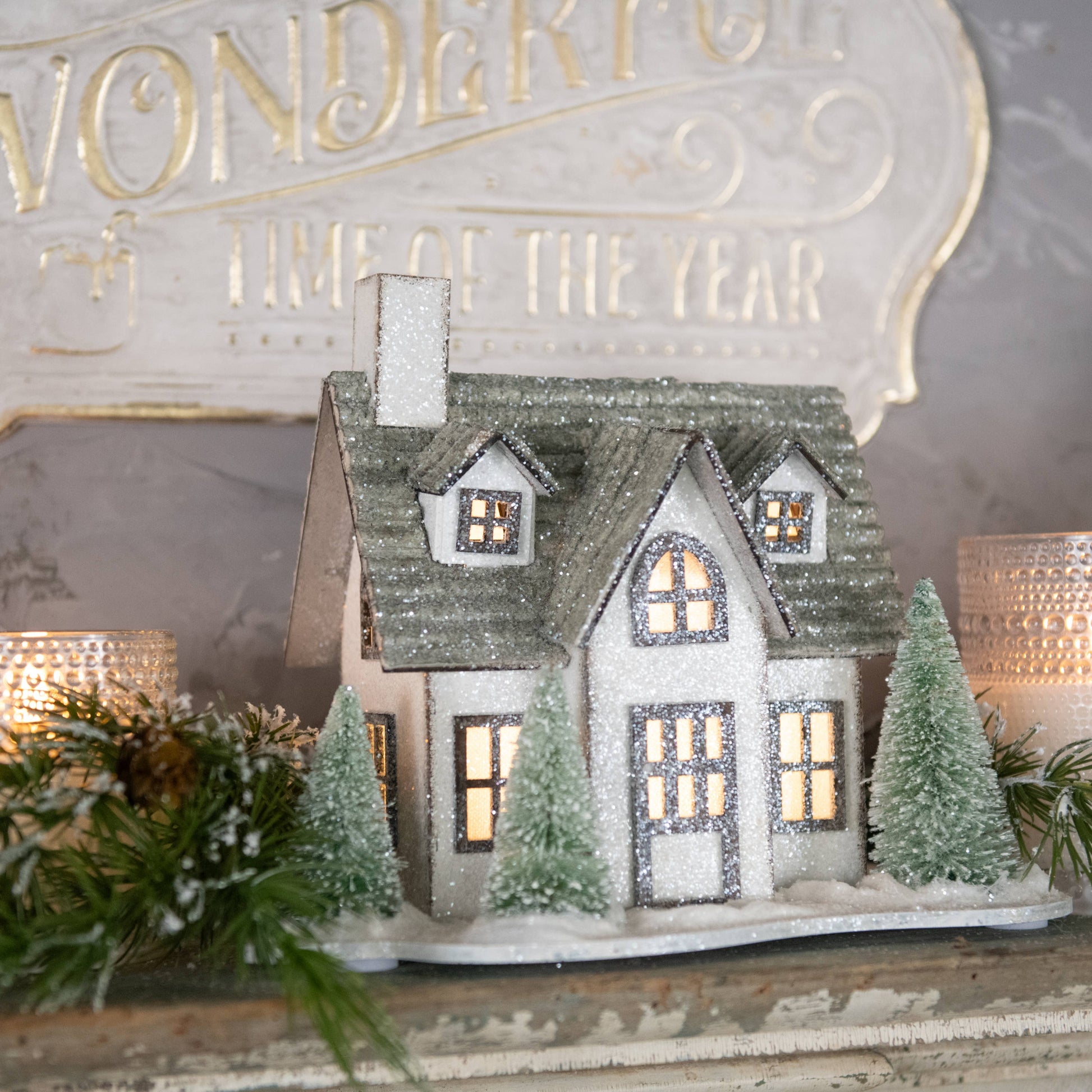 DECORATION, WINTER, CHRISTMAS, GLITTER, SISAL, WOOD