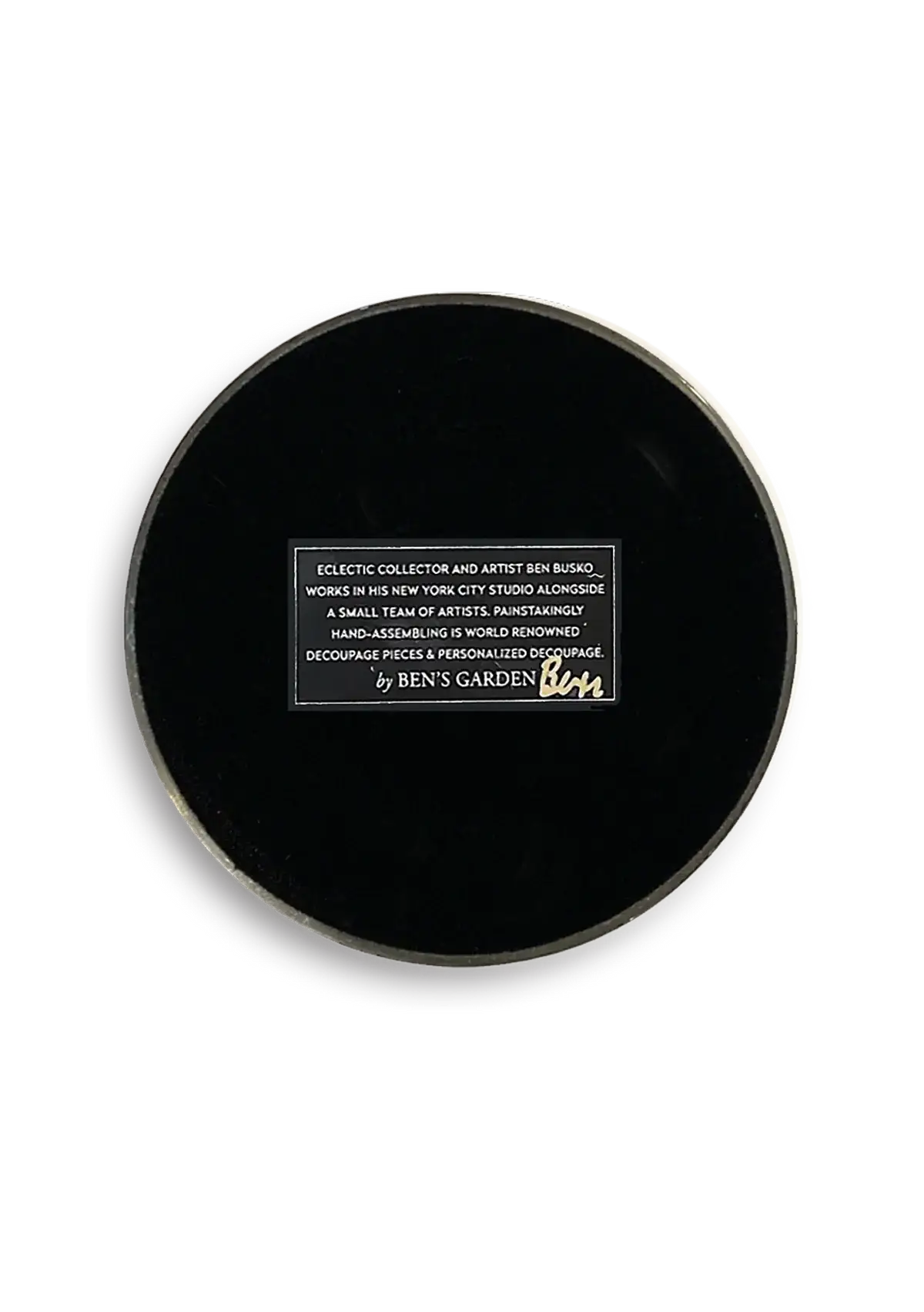 Bring a little sunshine to your desk, shelf or study with the Happy Sun Dome Paperweight- a radiant touch of vintage charm captured beneath brilliant French crystal. Handcrafted in our New York studio using the timeless art of découpage, this sparkling paperweight features a cheerful sun illustration that perfectly reflects Ben’s eye for the bright, the warm and the quietly whimsical. Each dome is individually signed by Ben, lending authenticity and collectible appeal. The felted back adds a refined touch, protecting surfaces with understated luxury and ensuring this small piece of functional art always feels special in the hand. Sized at 3.5 inches wide, it’s substantial enough to keep your papers in place while catching the light- a little daily reminder that work, too, should come with a moment of joy. Every piece arrives with a folded card explaining the centuries-old découpage process- a story layered with craft, history and just the right dose of sunshine.
