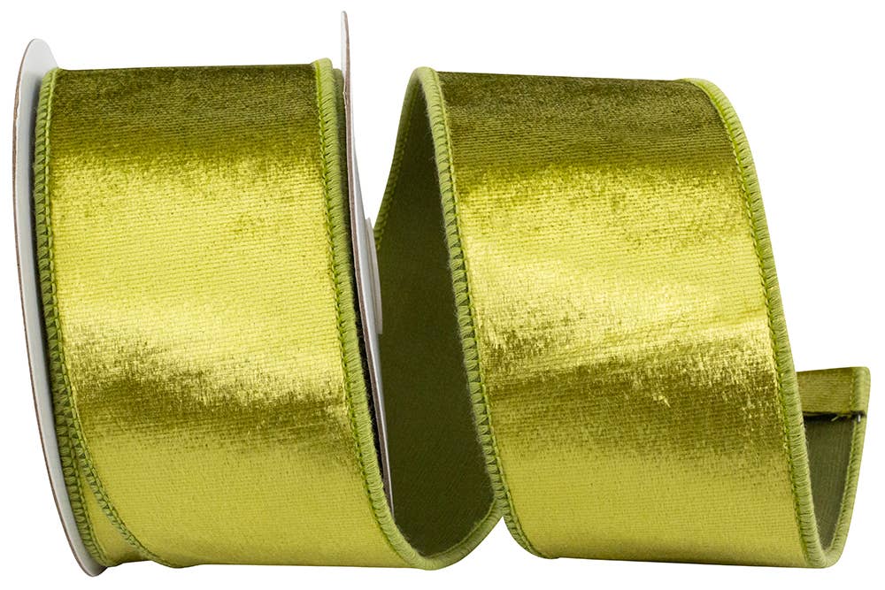 Ribbon , Green Grass, 2-1/2 Inch, 5 Yards - Experience luxury and versatility with our wired ribbon crafted from plush velvet. The soft and sumptuous texture of the velvet provides an opulent touch. With its finished backing, this ribbon offers a polished look from every angle.