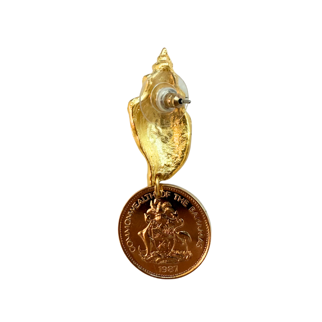 A touch of coastal glamour from the ’80s and ’90s. These gold-tone earrings pair classic coin detailing with sculpted shell motifs, creating a look that’s both elegant and sun-soaked. Perfect for adding a hint of vintage luxury—whether you’re channeling seaside chic or evening sparkle.