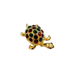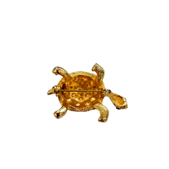 A little whimsy with a lot of sparkle. This vintage turtle brooch from the 1990s features a gold-tone body adorned with vibrant red, blue, and purple crystals that shimmer with every turn. Charming and full of character, it’s the perfect accent for a blazer, scarf, or bag—a playful nod to vintage style with timeless appeal.
