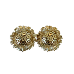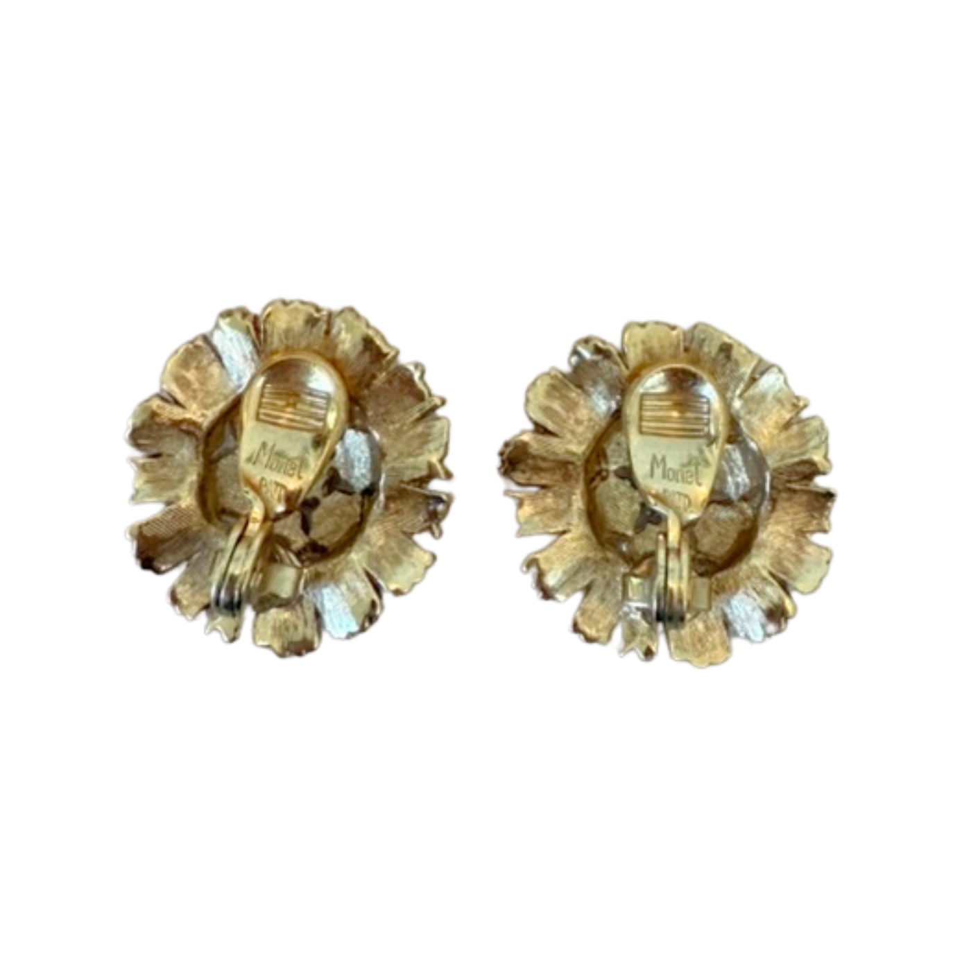 Glamour in bloom. These signed Monet clip-ons feature domed floral forms in soft brushed gold, perfectly chunky with that signature 1980s confidence. Sculptural, statement-making, and endlessly wearable.