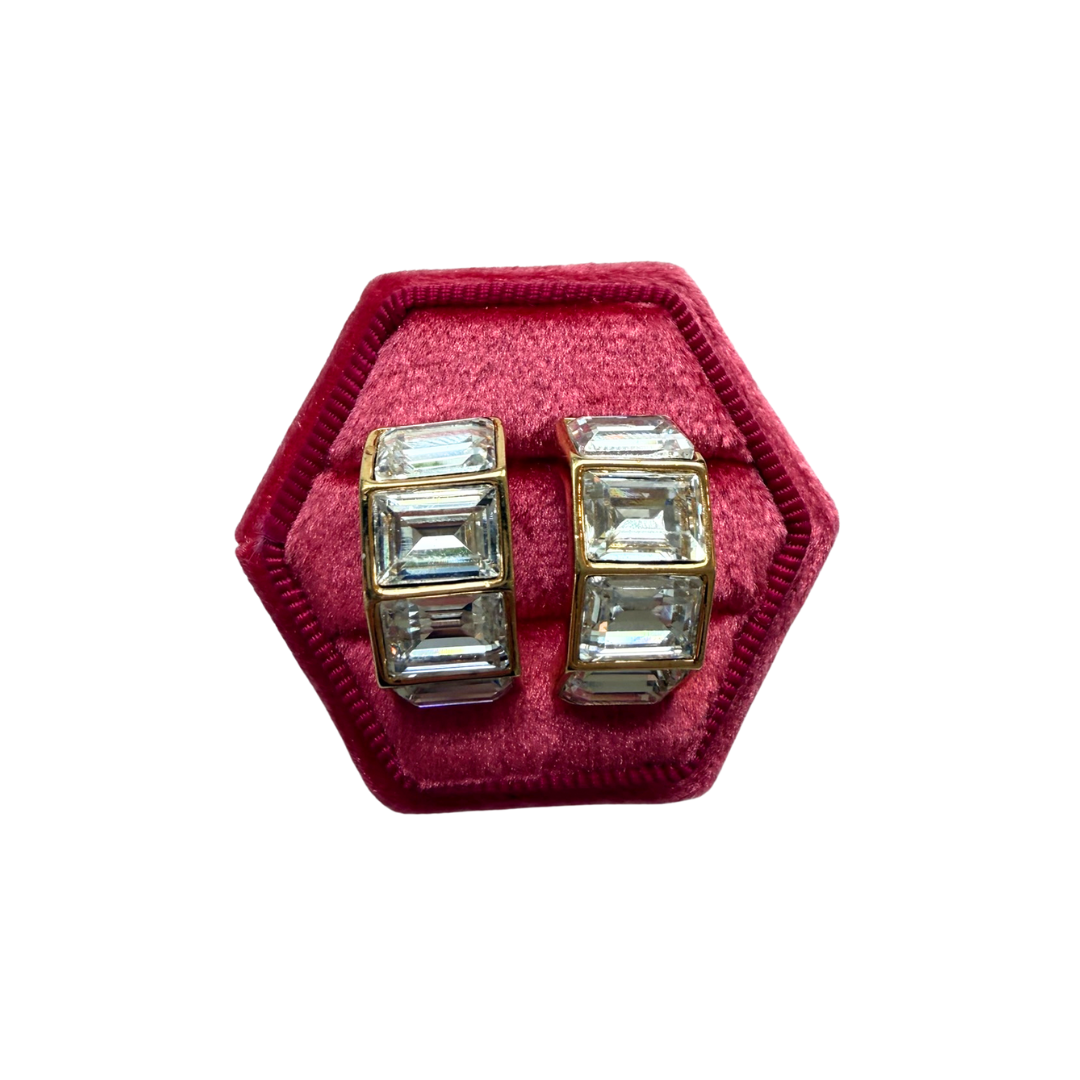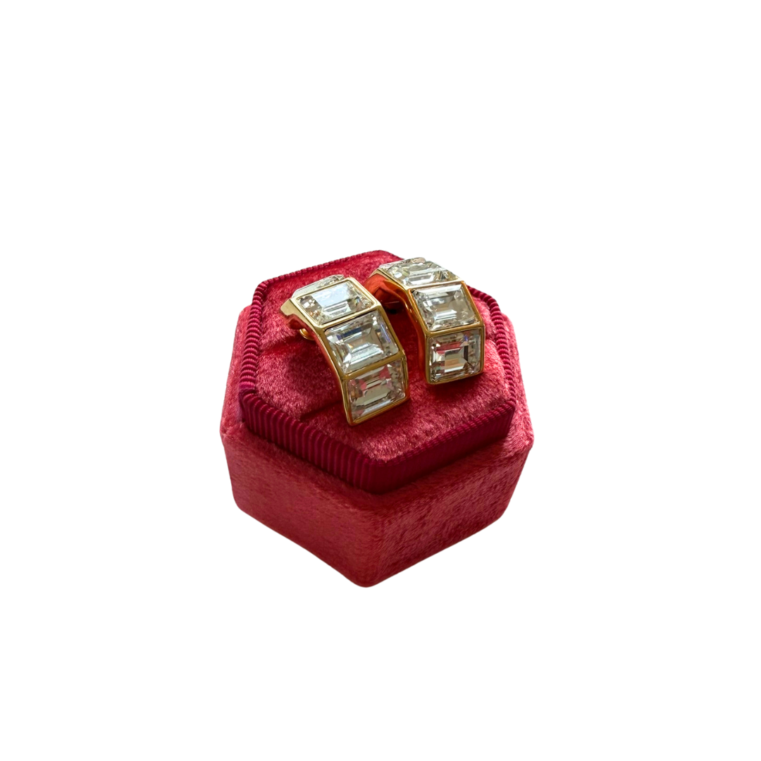 Vintage Baguette Stone Hoop Earrings