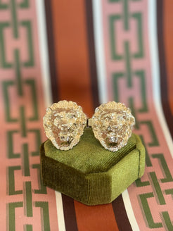 Gold-tone metal with detailed lion’s head motif