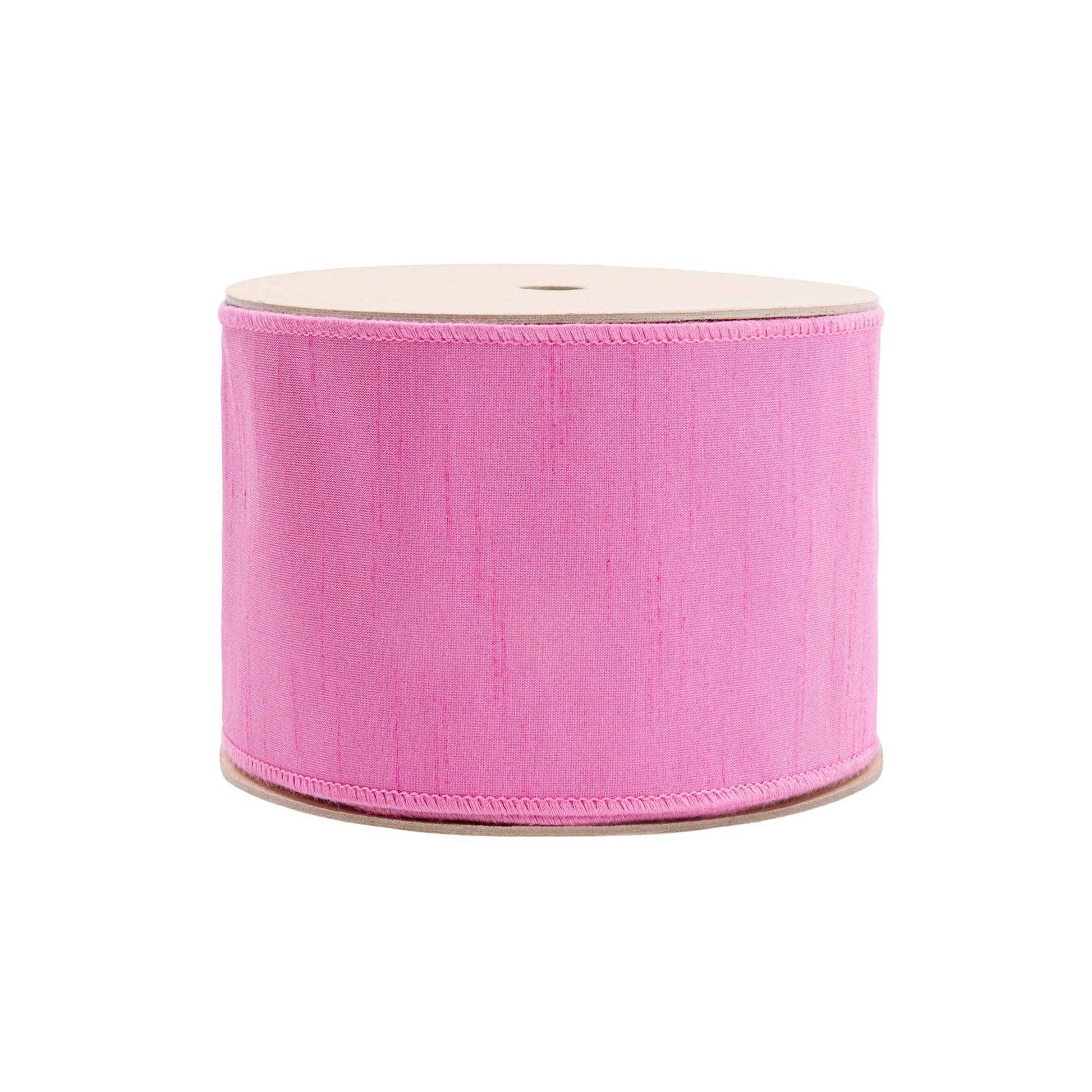 * Vibrant & Playful: This 4" hot pink double fused dupioni ribbon features a bold pink color with a striking red backing, perfect for adding a fun, energetic pop to your seasonal and festive decor.