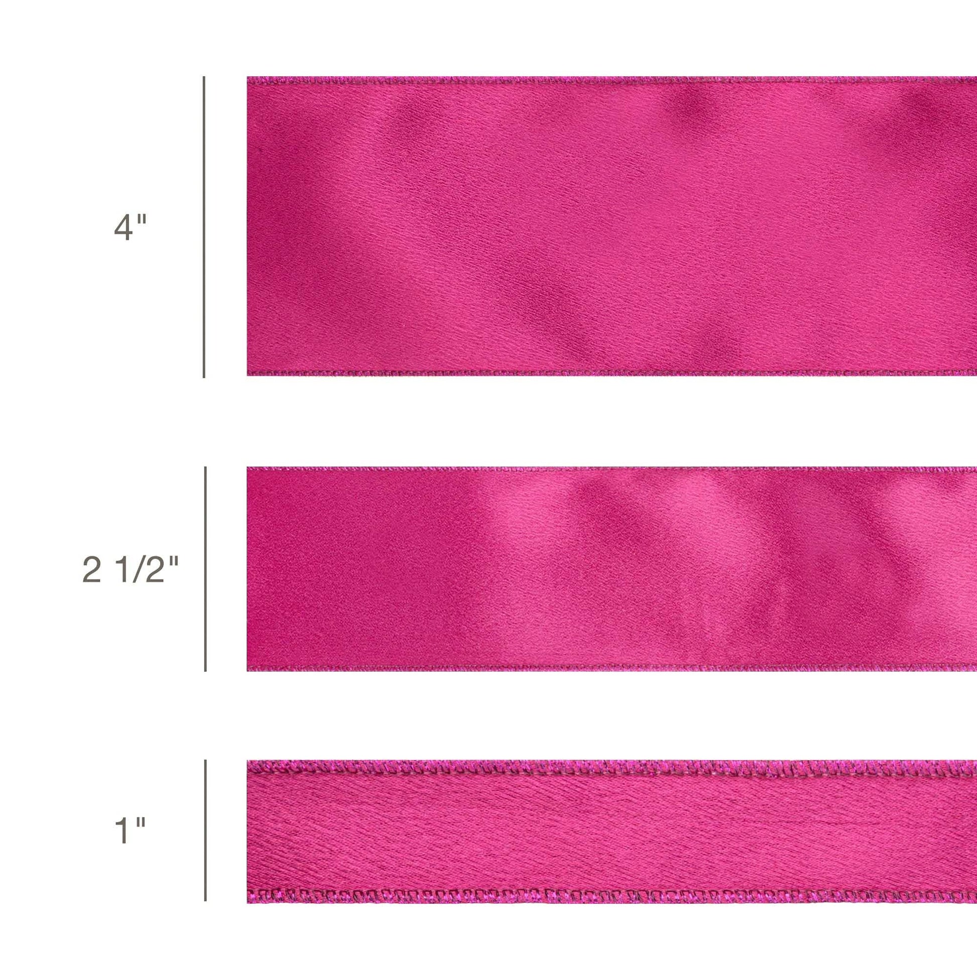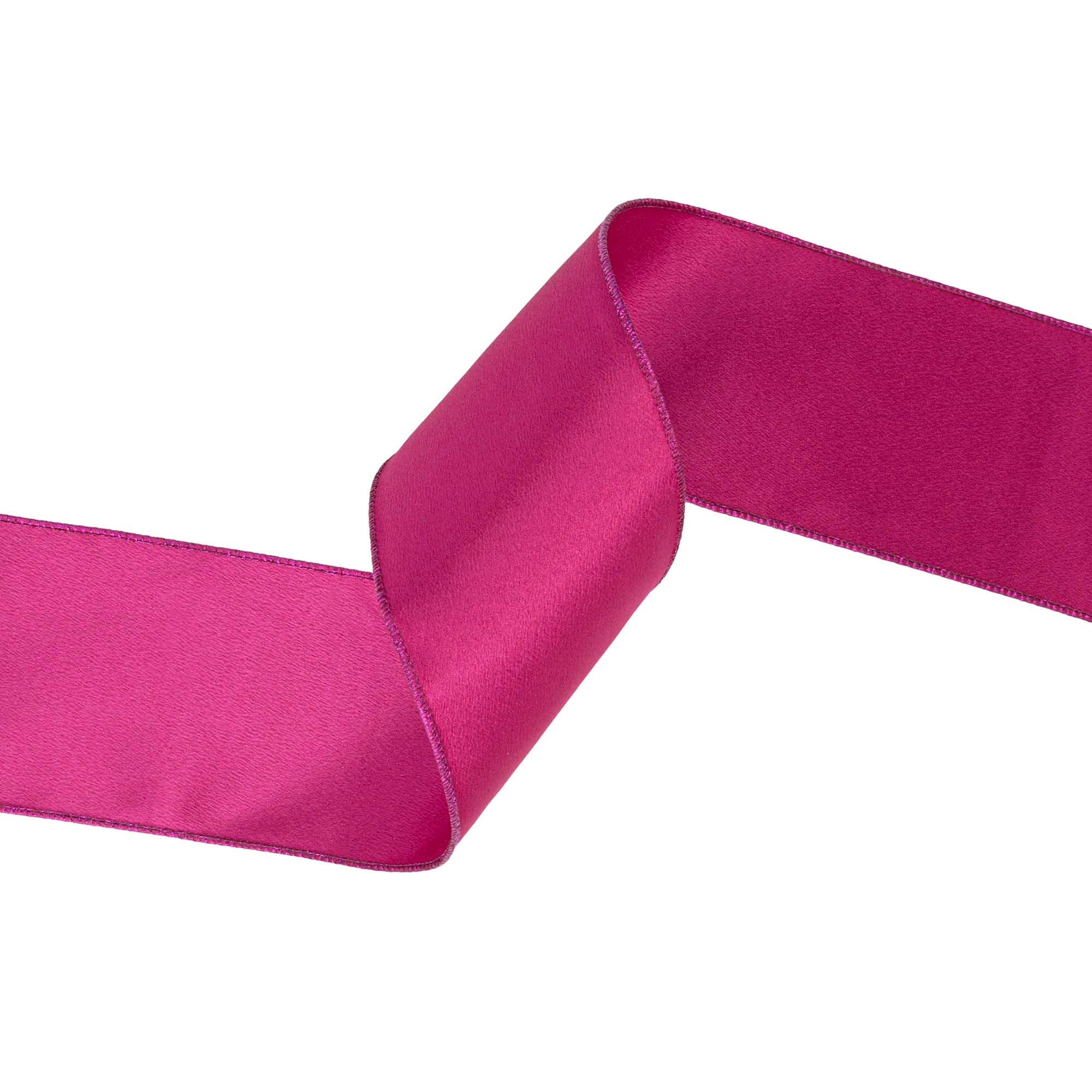 * Vibrant fuchsia shimmer satin ribbon with a luxurious sheen for bold and elegant decor.